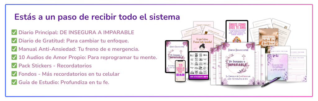 ¡SÍ! Por solo $3 USD, completa tu kit con este Planificador. Gestiona tu tiempo de 6am a 8pm e integra tu estudio bíblico con el Método E.O.A.O. Incluye metas de 12 meses y notas de sermones. ¡Ordena tu vida espiritual hoy!