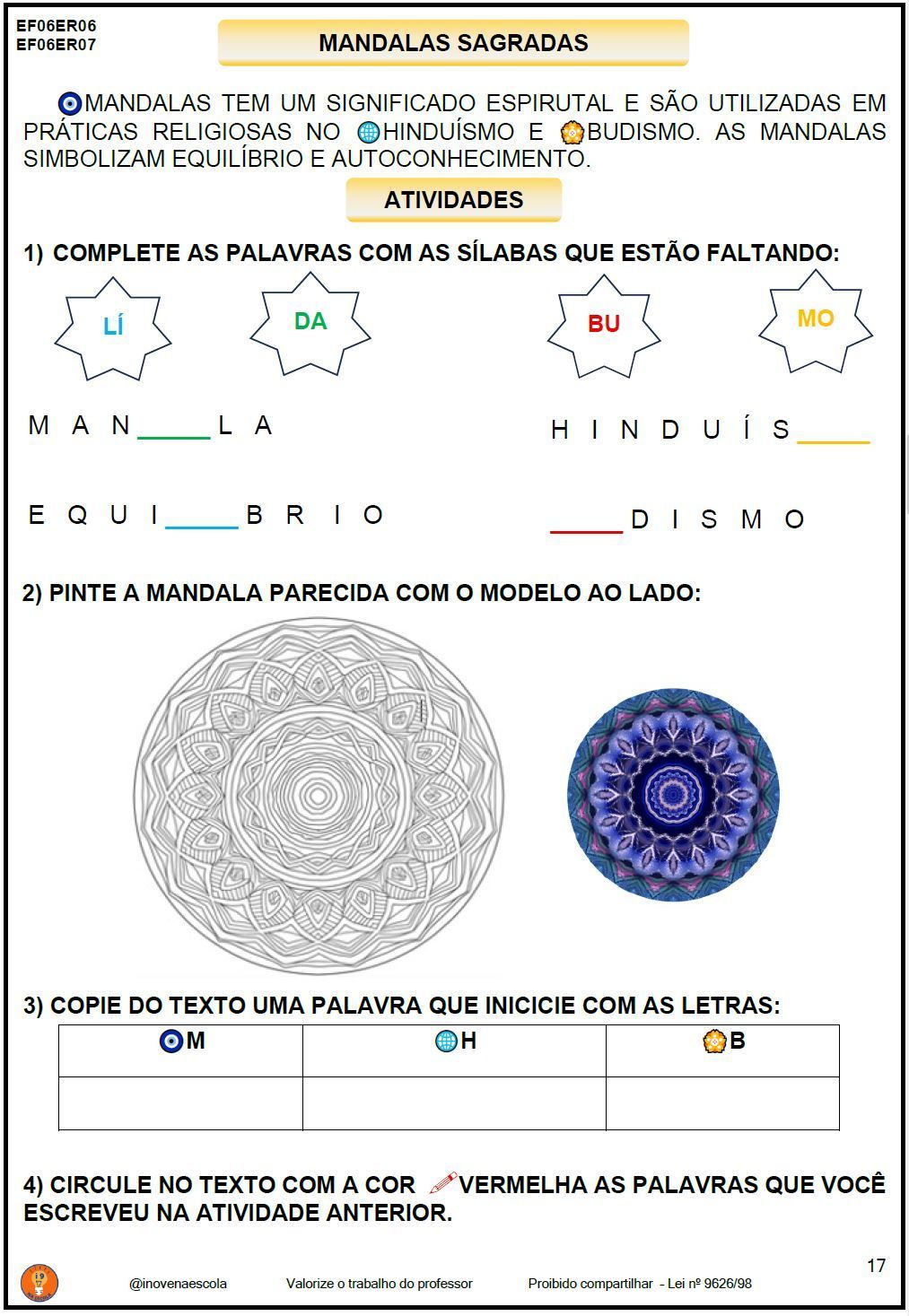 Ensino Religioso 6º ano NÍVEL 2 Atividades Adaptadas