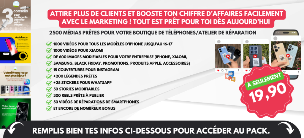 2500 médias prêtes pour votre boutique de téléphones/atelier de réparation
