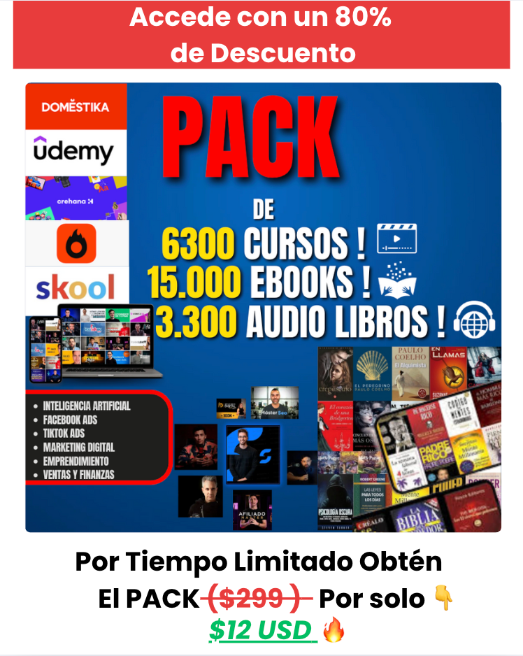 6300 Cursos + 15000 Libros + 3300 Audio libros.