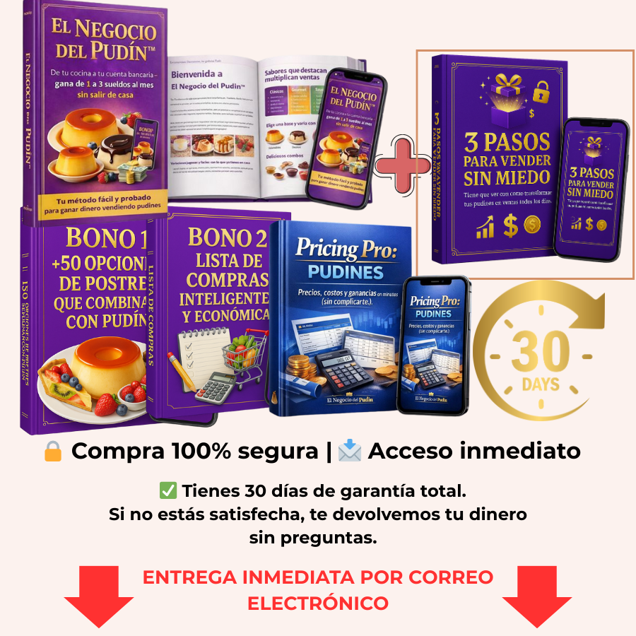 Evita errores comunes y ahorra tiempo con esta guía rápida. Descubre qué envases usar, dónde comprarlos más barato y cómo presentar tus pudines como una profesional — con links directos, ideas de presentación y checklist descargable. ¡Ideal para quien quiere empezar a vender ya!