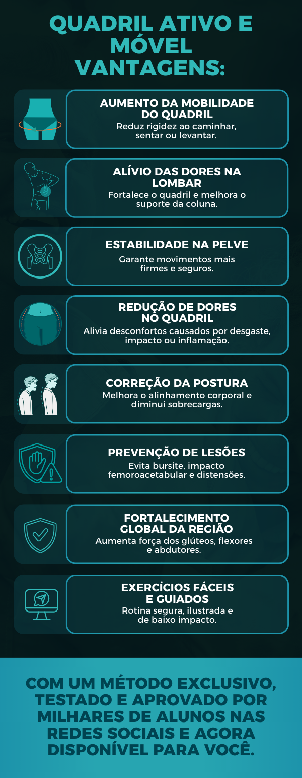 Ebook “Quadril Ativo e Móvel” - Recupere a leveza ao caminhar e a liberdade de movimentos do seu quadril.