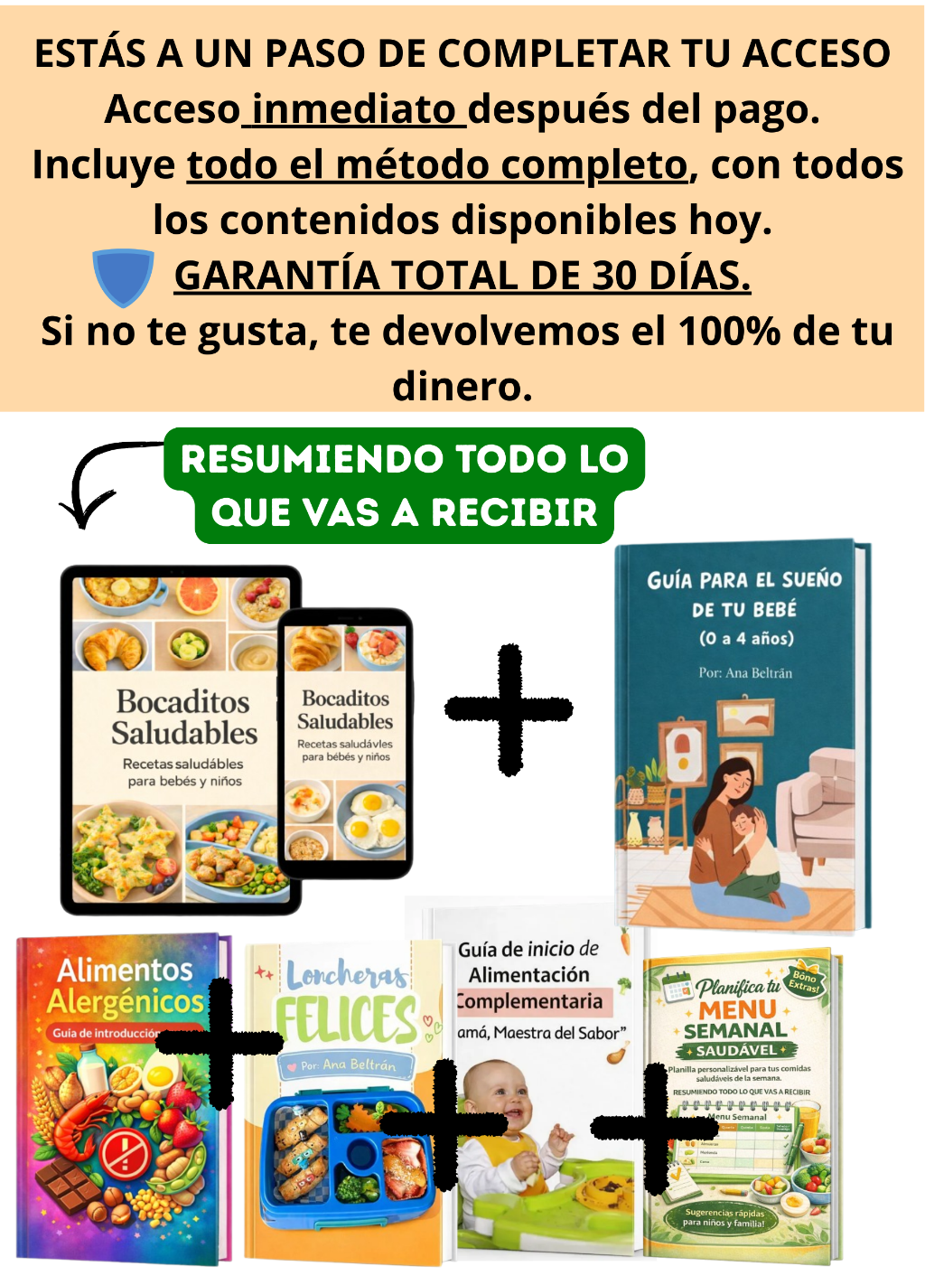 20 recetas saludables para fiestas de niños de 6 meses a 5 años. El material incluye opciones dulces y saladas sin azúcar y sin ultraprocesados, con ingredientes simples y modo de preparación paso a paso, facilitando la rutina de madres y padres que desean celebrar sin dejar de lado una alimentación saludable. Ideal para cumpleaños, reuniones familiares y fiestas escolares, con recetas seguras, nutritivas y adaptadas a la primera infancia. 🔥 86 % OFF — disponible solo aquí en el checko
