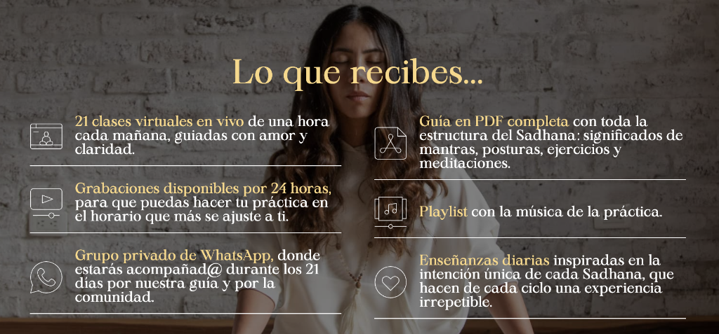 💫 Profundiza tu camino con El Brillo Radiante del Corazón: Una práctica transformadora para sostener la energía y la constancia que inicias con el Sadhana. Ideal para continuar cultivando tu conexión interior una vez terminen los 21 días. Hoy puedes sumarla con un precio especial por estar aquí.