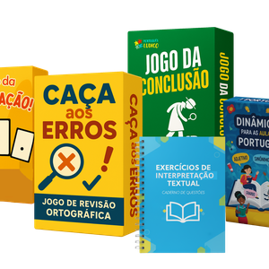 O clássico jogo do stop adaptado com categorias relacionadas à língua portuguesa. Acompanha a folha principal, regras e cards para sortear letras.