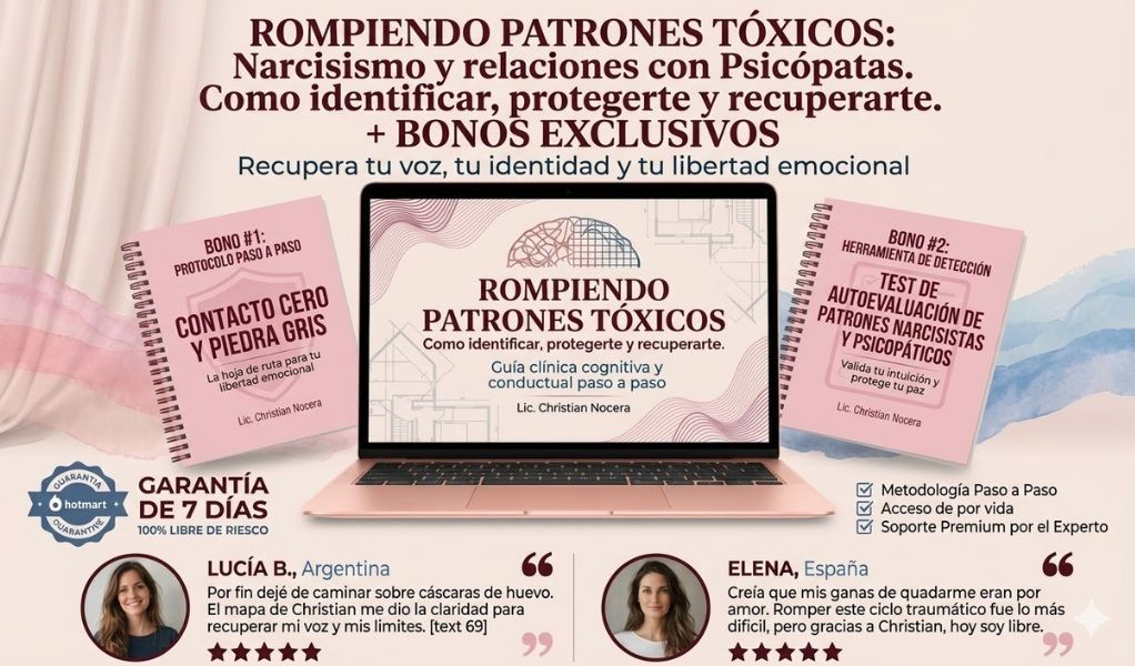 ¡Limpia tu mente desde la raíz! Romper patrones externos es vital, pero la verdadera paz llega cuando reprogramas tu diálogo interno. Este método clínico es el complemento perfecto para silenciar la culpa, el miedo y la autocrítica que dejaron las relaciones tóxicas. No solo se trata de salir del ciclo, sino de reconfigurar tus emociones para no volver a atraer lo mismo.