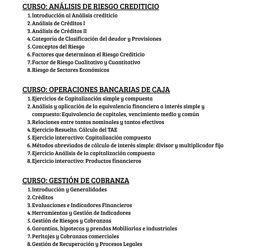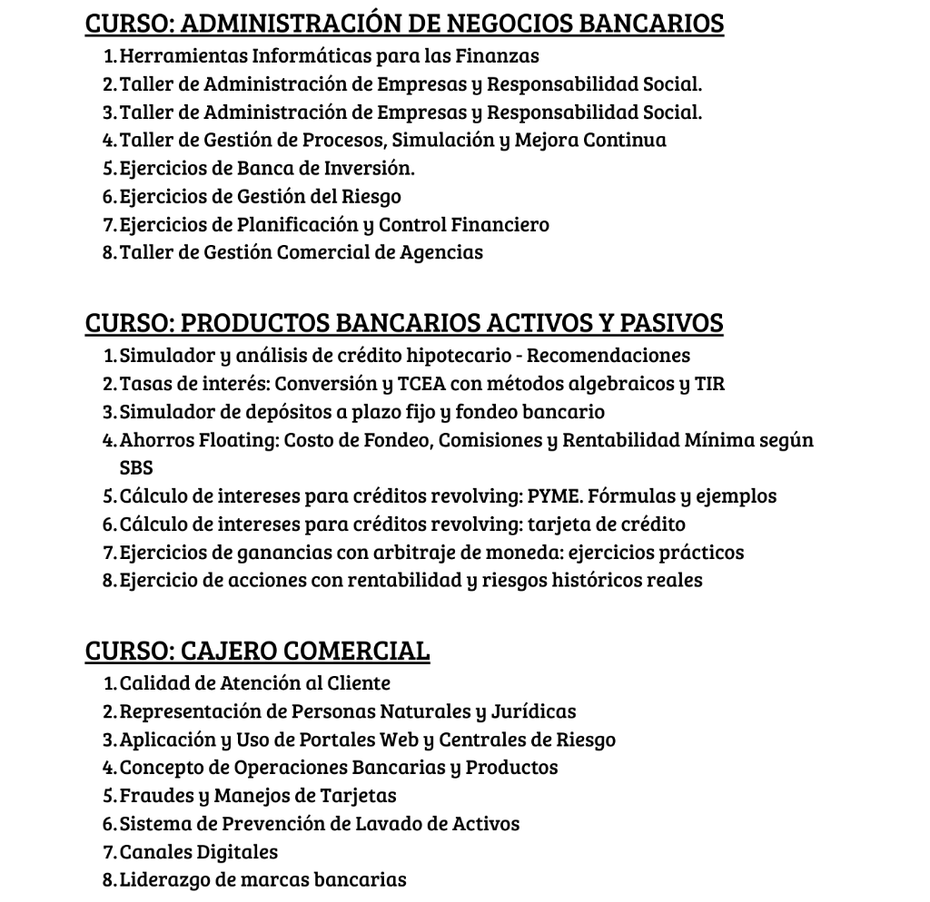 Este programa es ideal para gestores comerciales de agencias, analistas de créditos, cajeros bancarios, asesores financieros y profesionales interesados en la banca de inversión y la gestión de riesgos en entidades financieras.
