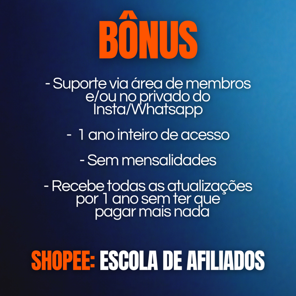 No curso Shopee - Escola de Afiliados te ensino a vender em massa. Para vender em massa é preciso criar copys e legendas antes de postar. No E-book Copy que Converte te dou 80 copys prontas para uso, para editar e para ter como base de ideias. Também te ensino o que são os gatilhos mentais e a importância deles. Copys assertivas que vão te ajudar a vender até 5x mais.