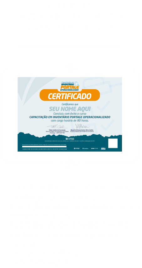 Curso com 30% OFF. O curso é destinado para profissionais da saúde, profissionais da educação e familiares de pessoas com TEA que querem dominar uma ferramenta e fazer uma avaliação padrão ouro. O curso conta com acesso por 12 meses às aulas, certificado com carga horária de 120 horas, plataforma exclusiva e equipe especializada de monitoria para tirar suas dúvidas.