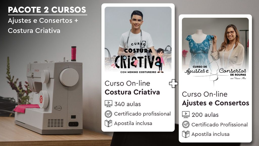 Pacote 2 Cursos - Costura Criativa & Ajustes e Consertos de Roupas