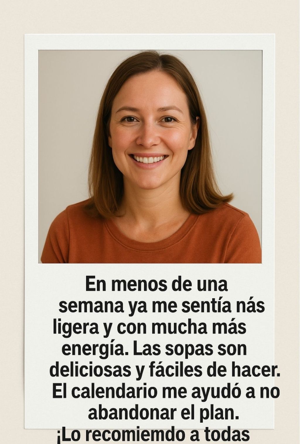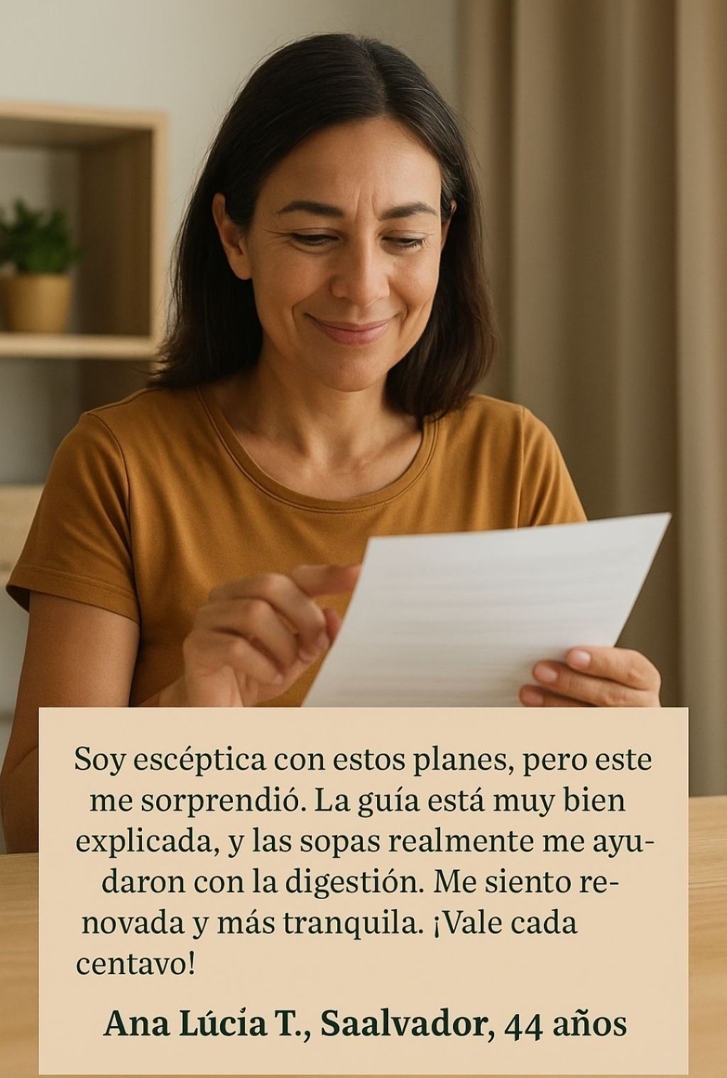Plan completo de desayuno, almuerzo y cena durante un mes, integrando las sopas y snacks saludables. Evita pensar qué comer y maximiza resultados. Recetas prácticas y sabrosas para adelgazar con salud y sin complicaciones — ¡aprovecha ahora con un descuento especial! Oferta exclusiva en esta página.