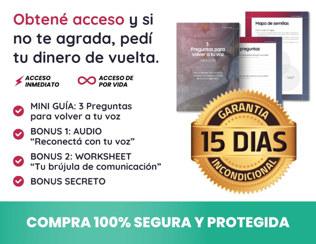 Esta mini guía es el siguiente paso natural después de recuperar tu comunicación auténtica. Aprendé a conectar con tu público desde la empatía real. Incluye audio y worksheet descargable.