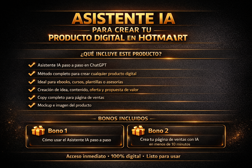 Asistente IA para Crear tu Producto Digital en Hotmart (Pago Único + Bonos)