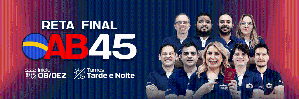 COMBO OAB 45 (RETA FINAL + REVISÃO 3X40 + MARATONAPI) TRANSMISSÃO AO VIVO - NOITE (ONLINE)