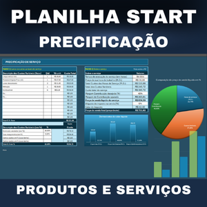 Se você quer ir mais a fundo sobre precificação de serviços e produtos adquira junto com a compra da Planilha Start o GUIA START, onde você conhecerá os fundamentos e o passo a passo da formação de um preço. Ideal para quem quer aprender mais (e ensinar) sobre precificação. GUIA E PLANILHA START, a dupla perfeita.