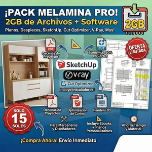 ¡PACK MELAMINA PRO ULTIMATE! +2GB de Planos, Despieces, SketchUp, Cut Optimizer, V-Ray + Instaladores