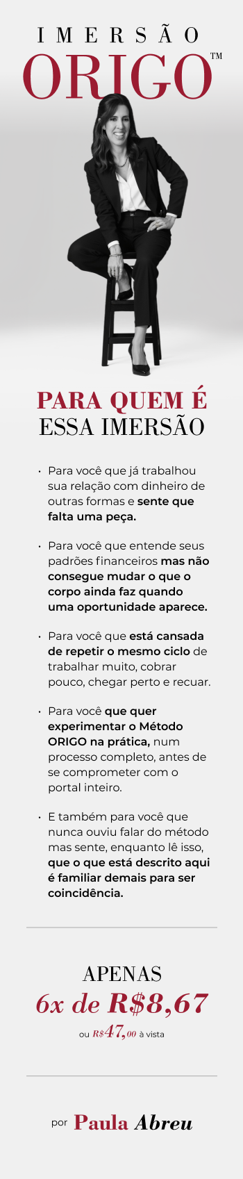 Inclui a gravação completa da Imersão ORIGO™ para assistir no seu tempo. Você terá acesso a todo o conteúdo da imersão, com uma prática de breathwork regulatória/funcional no lugar da sessão transformacional, que exige acompanhamento ao vivo.