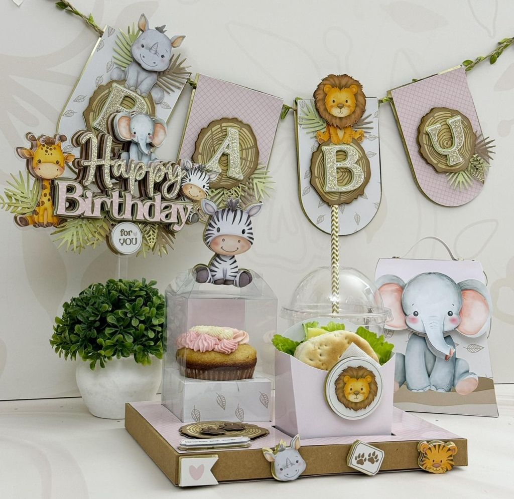 Esta colección esta conformado por cuatro (04) bellos articulas: Banderín, Caketopper, cotillón, mini bandeja