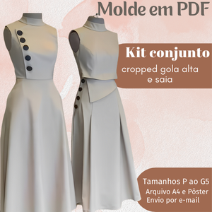 MOLDE EM PDF KIT CONJUNTO - Cropped gola alta e saia