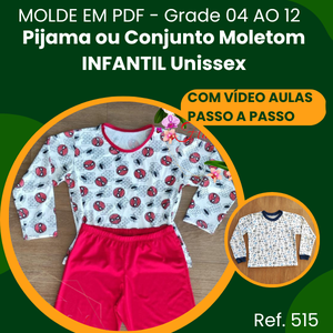 Molde Pijama Inverno Infantil Unissex Ref. 515 + Aula (Grade 04 ao 12)