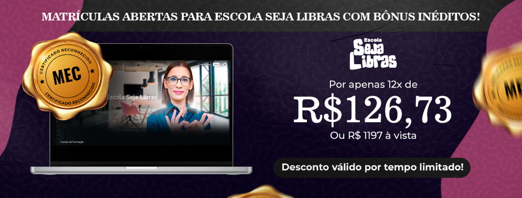 Garanta acesso VITALÍCIO à Escola Seja Libras e domine a língua no seu ritmo, sem pressa, sem limite de tempo - por apenas R$697