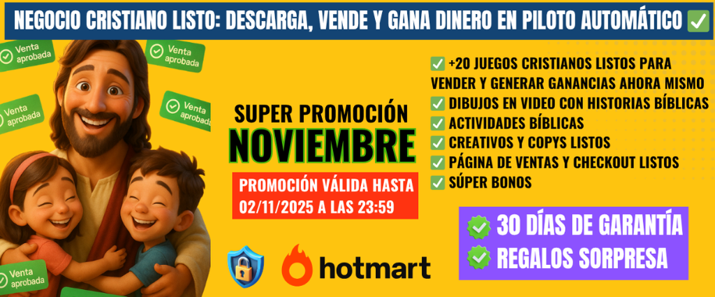 ¡Oportunidad única! Material listo para revender y ganar en el nicho cristiano infantil. Ideal para que los niños aprendan la Palabra de Dios de forma divertida y creativa.