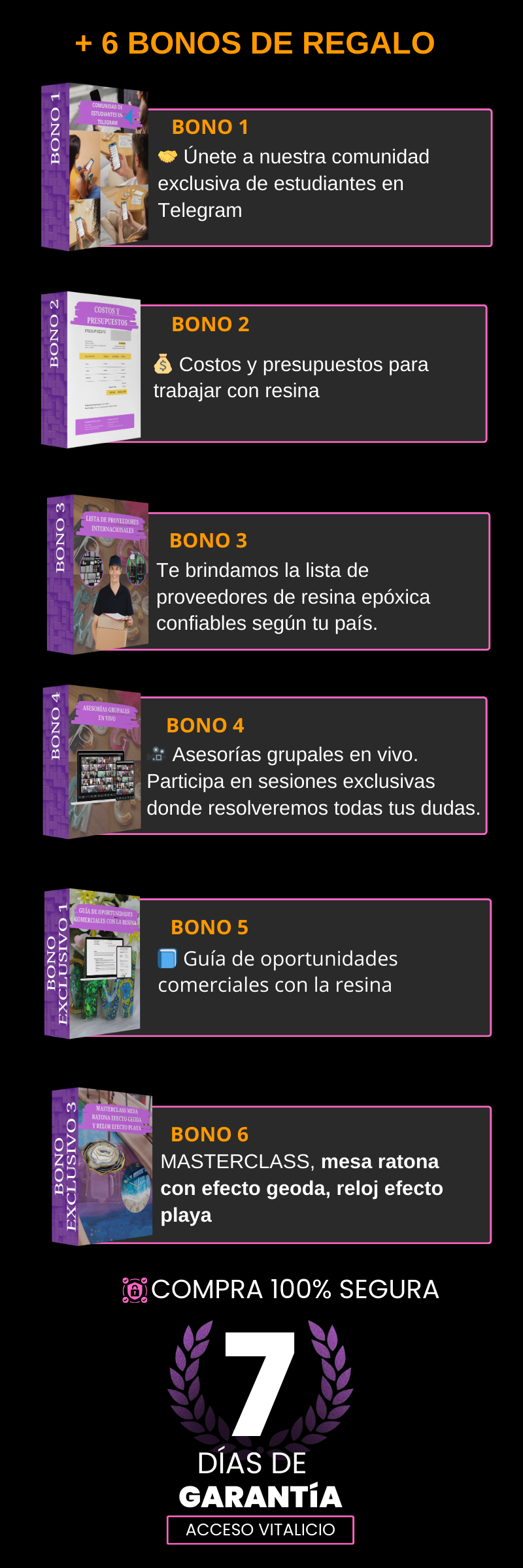 🧪 Ten siempre a la mano una guía rápida de accesorios en resina para revisar mezclas y corregir errores mientras trabajas tus piezas. Aprovecha este descuento exclusivo y añádela ahora a tu pedido.