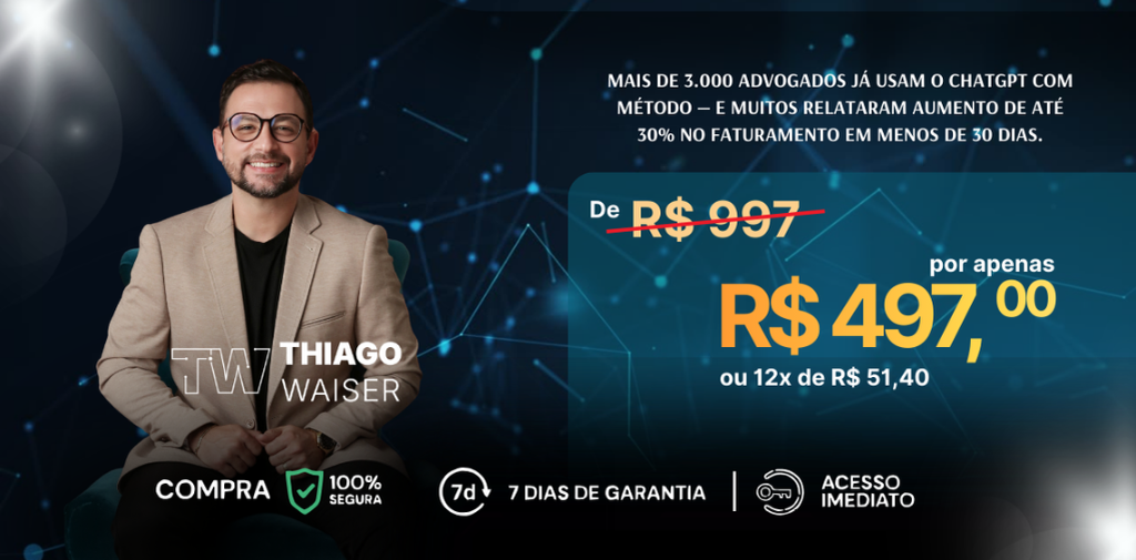 🔥 Adicione ao seu pedido A AUTOMAÇÃO DO SEU WHATSAPP — de R$497 por apenas R$297 Curso WP-ADV: aprenda a automatizar seu atendimento no WhatsApp com IA, sem parecer robô. Implemente em minutos um fluxo humanizado que capta e responde novos clientes automaticamente. ✔ Aulas rápidas e diretas ✔ Modelos prontos para copiar e colar ✔ ChatGPT configurado para falar como um advogado de verdade ✔ Nunca mais perca um cliente por falta de resposta