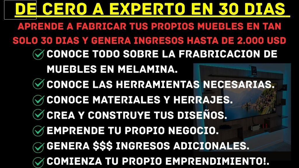 đ Ebook Premium de CarpinterĂa en Melamina ÂżQuerĂ©s llevar tus proyectos al siguiente nivel? Con este pack exclusivo tenĂ©s todo lo que un profesional necesita: 1ïžâŁ GuĂa prĂĄctica para diseñar cocinas paso a paso. 2ïžâŁ MĂĄs de 50 planos de mĂłdulos de cocina con medidas y despiece listos para usar. 3ïžâŁ 100 planos de muebles modernos con despieces detallados. 4ïžâŁ Una plantilla en Excel para controlar tu tiempo y optimizar cada proyecto. đ Es un recurso Ășnico que te ahorra años de prueba y error, pe