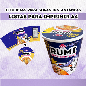 Etiqueta RUMI para sopa instantanea lista para imprimir A4