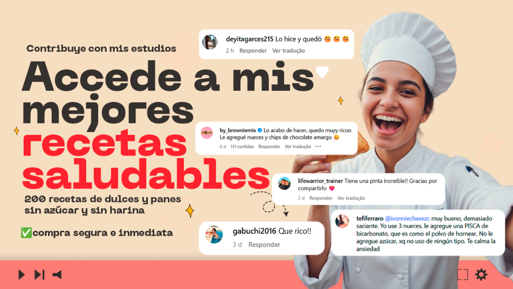 Con esta contribución simbólica, obtendrás acceso completo a mi libro con mis mejores panes y postres saludables, además de apoyar mis estudios de gastronomía. Es una forma de recibir recetas deliciosas, fit y fáciles, mientras me ayudas a continuar crean