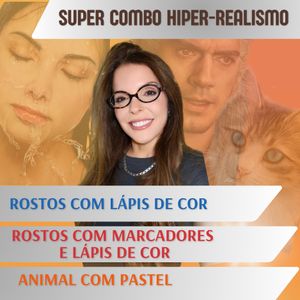 Super Combo - Hiper-Realismo de Rostos com Lápis de Cor + Rostos com Marcadores e Lápis de Cor + Animal com Pastel