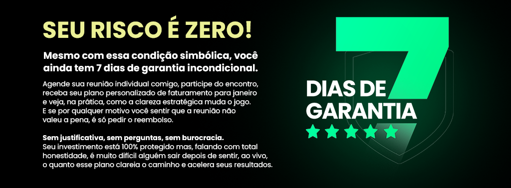 Eu vou desenhar com você o plano que vai colocar dinheiro no seu caixa em janeiro. Janeiro é sua melhor chance de criar caixa rápido e se posicionar na frente. A pior coisa que você pode fazer agora é começar o ano sem um plano.