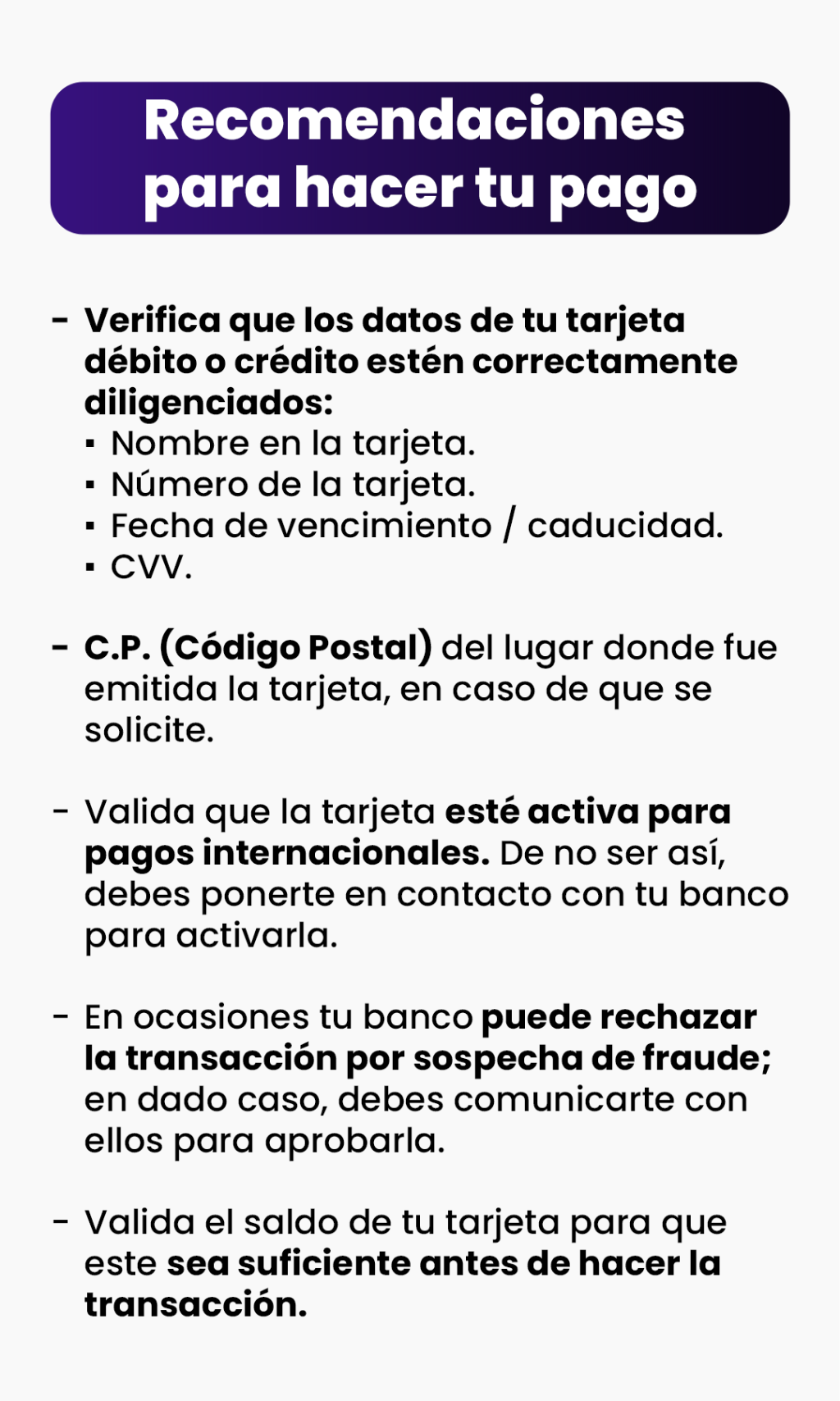 Datos del método de pago