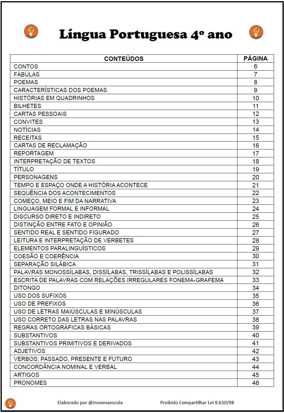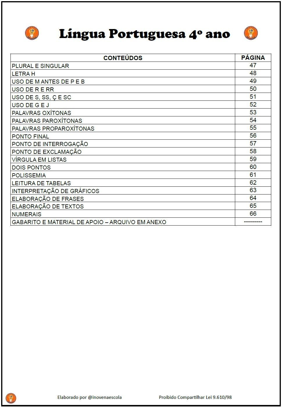 Língua Portuguesa 4° ano Atividades Adaptadas