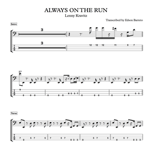 ALWAYS ON THE RUN (Lenny Kravitz) Bass Score & Tab Lesson