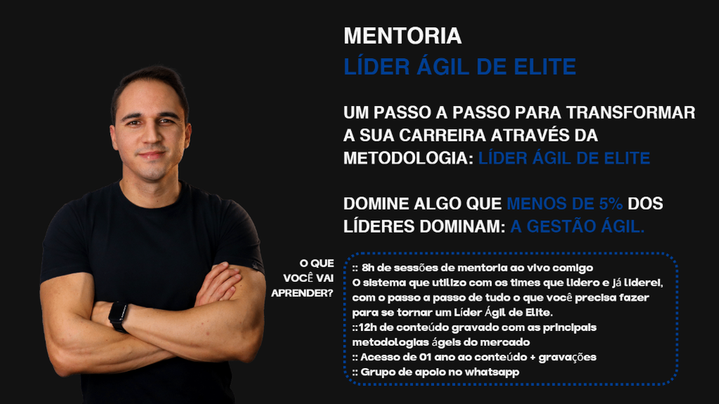 Eu vou te orientar em como se tornar um líder de elite na organização em que você trabalha, através da gestão ágil e fazer com que você atinja os R$ 15.000,00 de salário na metade do tempo.