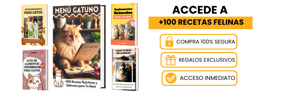 Accede a más de 100 Recetas de Snacks Saludables para tu gato y sorpréndelo con opciones deliciosas, fáciles de preparar y 100% naturales. Cuida su bienestar mientras lo consientes como nunca.