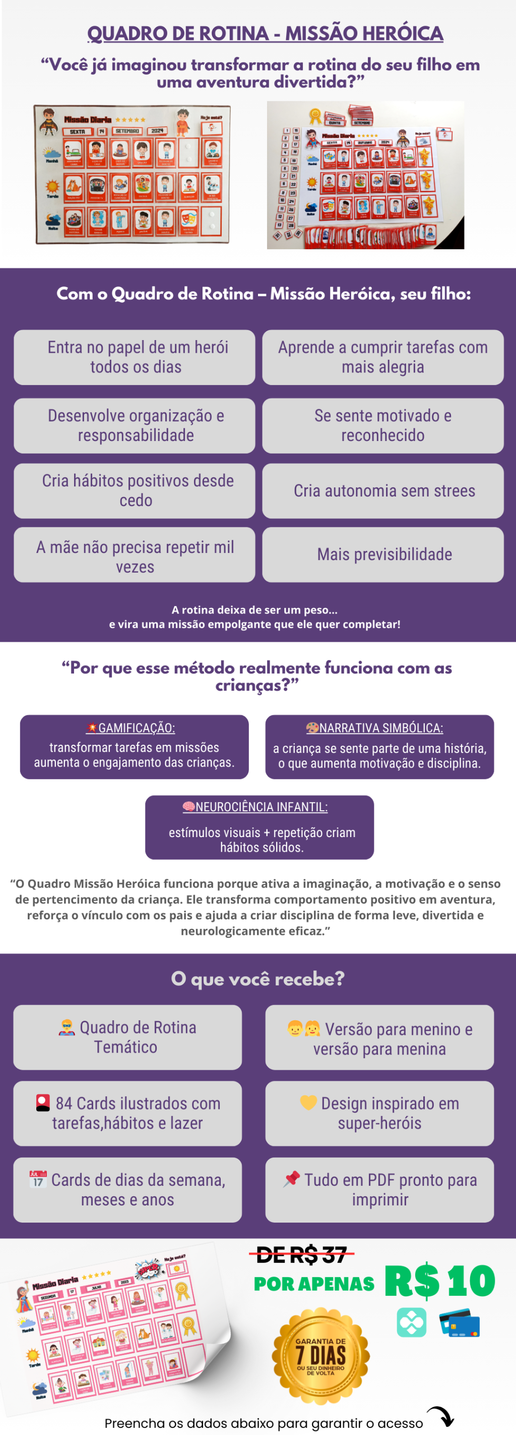 Quadro de Rotina - Missão Heróica - Arquivo em PDF pronto pra impressão