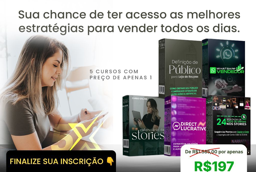 O guia completo para transformar o feed do Instagram da sua loja em uma máquina de vendas! Aprenda a atrair mais clientes e vender seus looks com estratégia. Adicione ao seu pedido agora e aumente sua lucratividade!