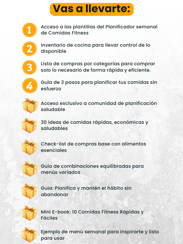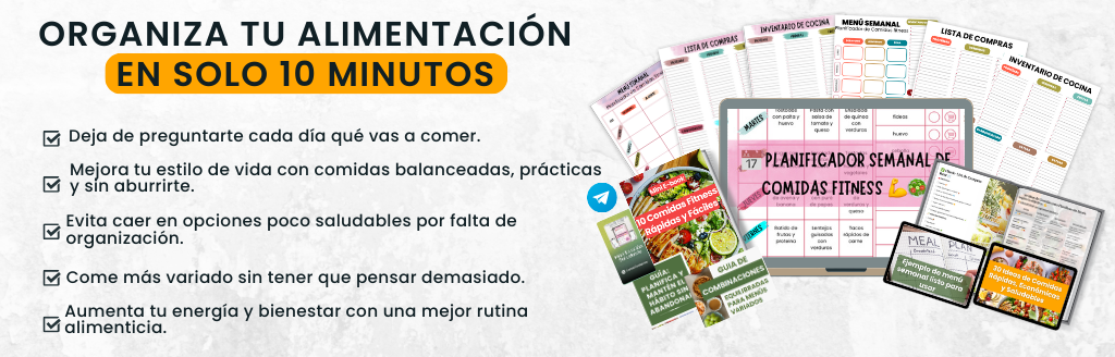 ¿Quieres simplificar aún más tu alimentación? Añade la Mini Guía de Meal Prep y aprende a cocinar toda tu semana en solo 2 horas. ¡Haz tu nutrición fitness más fácil y efectiva!