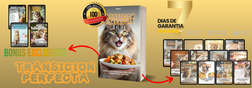 Sorprende a tu gato con comidas caseras, nutritivas y llenas de sabor. Este recetario digital incluye más de 100 preparaciones fáciles, equilibradas y seguras para mantener a tu gato feliz, sano y bien alimentado todos los días. ¡Dile adiós al aburrido alimento procesado y dale el amor que se merece en cada plato!