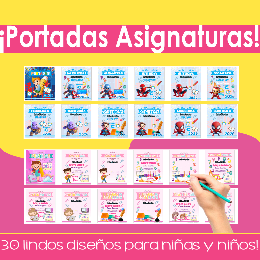 Incluye ideas, coloridos dibujos, nombres de asignaturas, márgenes decorativas, abecedarios, horarios y stickers imprimibles que harán que cada cuaderno refleje su personalidad y entusiasmo por aprender, nuestros e-books inspiran la imaginación y fomenta la expresión artística de los pequeños.