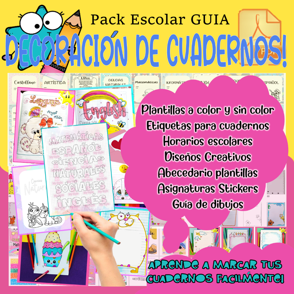 ¡Haz que la vuelta al cole sea divertida y creativa con nuestro Pack Guía para Decorar Cuadernos Escolares!