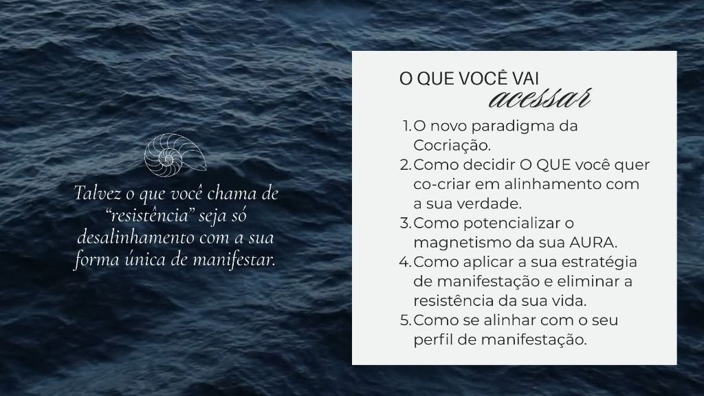 Acesse também o curso Oceano da Prosperidade, e descubra como seu mapa revela o caminho para manifestar dinheiro com leveza e sem resistência.