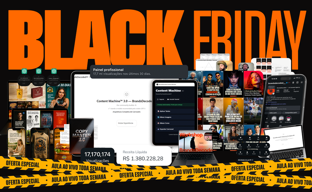 O passo a passo usado pela BrandsDecoded pra transformar Instagram em máquina previsível de vendas. Você vai aprender a atrair audiência que compra, criar uma linha editorial viciativa e estruturar sua Big Idea pra que cada post se torne um ativo de conversão. Com 5h de aulas intensas + 3 ferramentas aplicáveis, você para de “postar por postar” e passa a comandar atenção que vira faturamento.