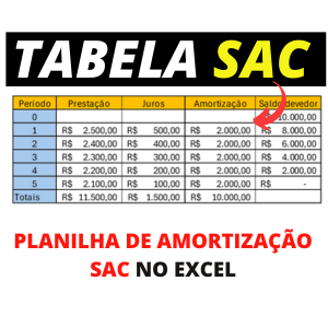 Tabela SAC no Excel - Sistema de Amortização Constante