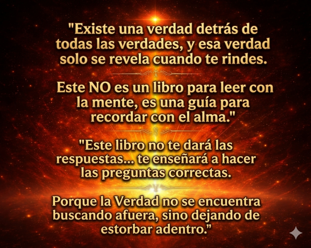 "Este libro, hasta la página 37 que leí hoy en tres partes del día, para mí es lo que mi yo interno ya sabe, me ha estado diciendo, me lo ha venido recordando aquí y allá. Pero este libro viene tipo: mira, más claro no te lo puedo poner, una confirmación muy clara. Yo sé que todo está dentro de mí. Y lo que saco de este libro es realmente volver a mi presente, a escuchar a mi yo interno en cada momento, a tener una comunión conmigo misma. Es como caminar con mi mejor amiga, mi yo interna, y platicar desde esa presencia. Más allá de esta confirmación y empuje que me trae tu libro, a realmente darme ese espacio sagrado más, este libro me ha aportado unas llaves importantes, y solo voy hasta la página 37. Y esta frase me encantó, me tocó… bueno, todo me tocó, pero esta frase hizo que se me prendiera la lamparita interna: > “Porque cuando se revelan cosas, nunca llegan completas; y cuando el maestro habla, no te lo da todo.”"