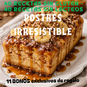 Acceso inmediato al ebook digital "Postres Irresistibles sin gluten y sin Lácteos". Recetas fáciles, ingredientes accesibles y resultados profesionales en casa.
