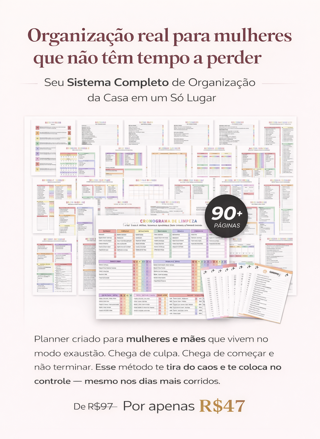 Você organizou sua casa, mas quem cuida da organizadora? Adicione o Planner Essência Feminina ao seu pedido. Um guia prático para mulheres sobrecarregadas que precisam se reconectar consigo mesmas em 10 minutos por dia. O que você vai receber: 📄 Checklist de Rituais Matinais Rápidos 🌙 Guia de Descompressão Noturna (para dormir melhor) 💖 Ferramentas de Autoestima e Merecimento